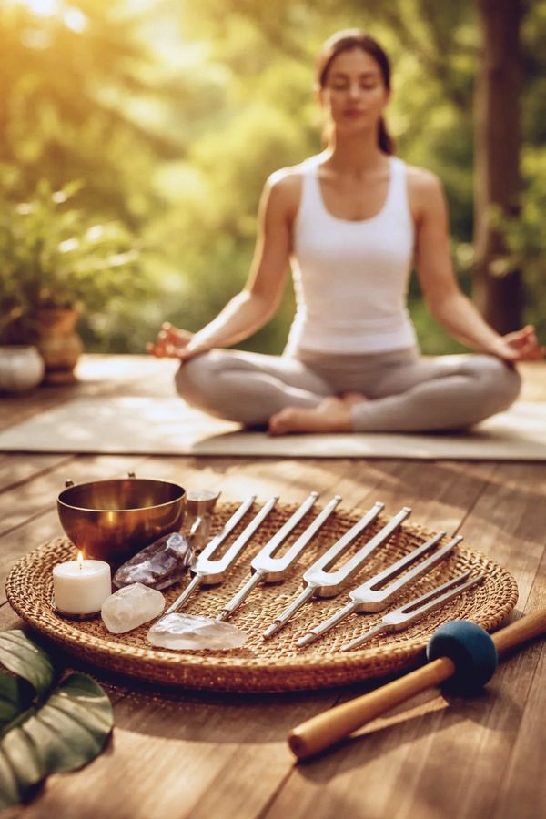 - Weighted 128 Hz Forks: Deep vibrations applied directly to the body to soothe chronic pain, boost circulation, and provide instant grounding.